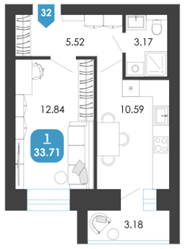 Площадь от 33.71 м2