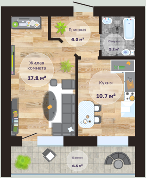 Тип квартир: только однокомнатные. Все планировки продуманы с учетом современных требований к жилью. Планировки: квартиры - студии и 1 комнатные квартиры с площадью от 29,9 до 40,8 кв.м. Удобно подобрать вариант для молодой семьи или инвестиции. Высокие потолки 2,7 м. позволяют реализовать различные дизайнерские решения.