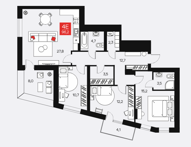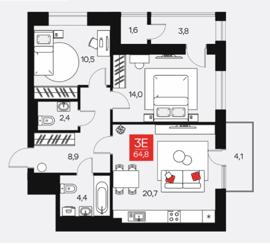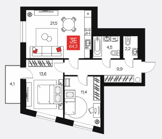 В проекте представлены просторные квартиры, идеально подходящие для семей с детьми. Светлые с большими окнами, продуманными планировками, гардеробными и нишами под кондиционеры. Планировки квартир - студий проектом не предусмотрены.