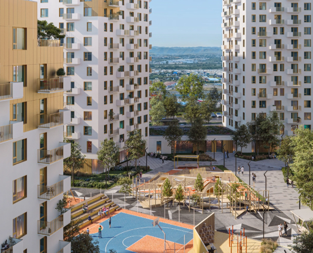 Все секции комплекса объединены приватным закрытым двором, где разместятся детская и спортивная площадка, а так же зоны отдыха.
