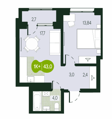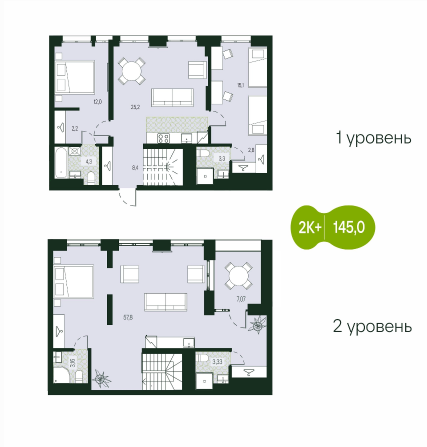 Площадь от 57.3 м2