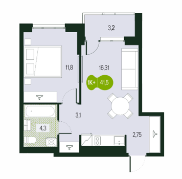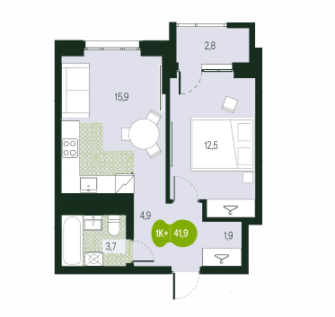 Площадь от 38.28 м2